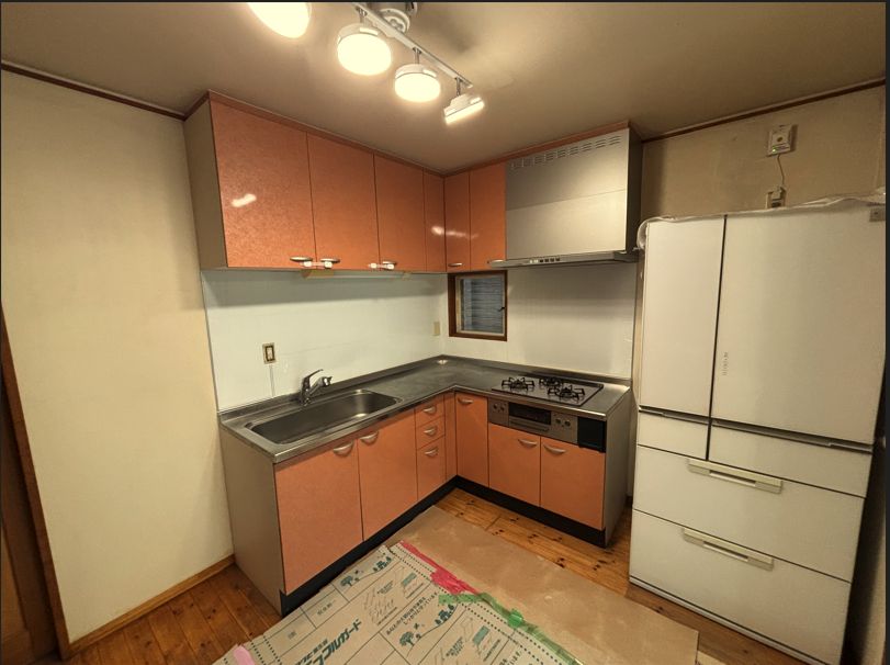 キッチン周りの床の重ね貼りがしてあり段差ができるので下地からのSフロアー貼